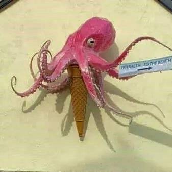 The octopus ice cream is called Lady Penelope, the result of a naming competition which was held by staff at the town’s Station View Café. Lady Penelope is a key component of the trail and now adorns a wall holding up a ‘to the beach sign’, pointing the way with one of her tentacled limbs!