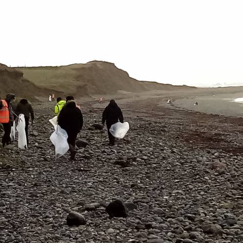 Thirty students were busy collecting rubbish left behind, or washed up on the popular beach, about 2 miles from Coleg Glynllifon’s campus.