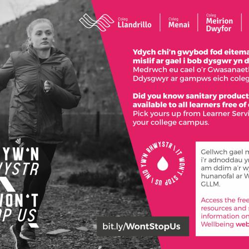 Free sanitary products are also available to all female learners through the Grŵp’s Period Dignity campaign, `It Won't Stop Us'