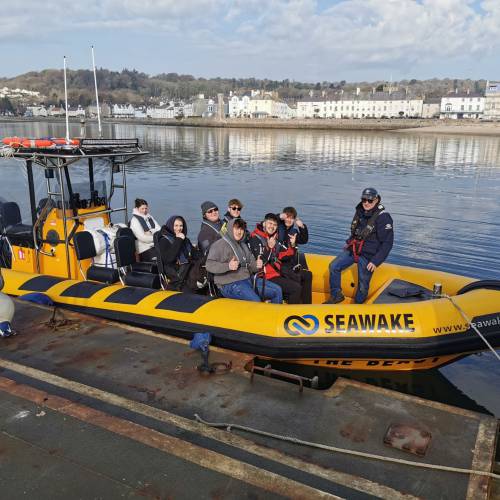 As part of the Welsh Government's ‘Winter of Well-being’ scheme, students on Coleg Meirion-Dwyfor’s Marine Engineering course at the Pwllheli site had the opportunity to ride Anglesey Boat Trips’ SeaWake boat recently.