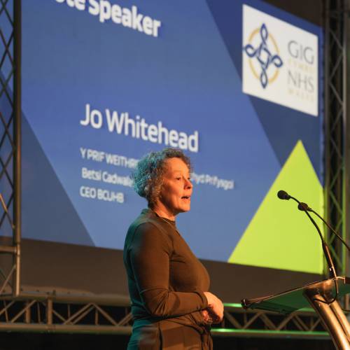 Presenting to the students were Jo Whitehead, Chief Executive Officer at Betsi Cadwaldr and Angela Wood, Executive Director Nursing and Midwifery for Betsi Cadwaldr.