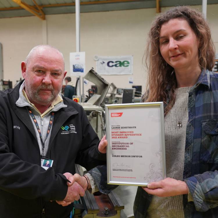 Laurie Zehetmayr, who studied Engineering at the college’s Dolgellau campus, recently won the ‘Most Improved Student Apprentice’ award from Institution of Mechanical Engineers (IMechE).