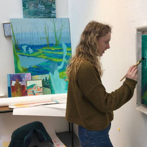 ‘I am very grateful to Galeri Caernarfon and our tutors Emrys Williams and Jane Parry for giving us the opportunity to show our work that we have done with so much effort and enthusiasm. It has been very exciting to dive into the history and atmosphere of the city of Caernarfon and try to reflect the feelings that it provokes in us”.