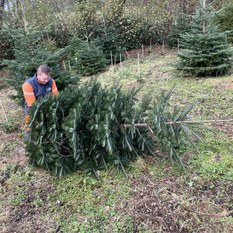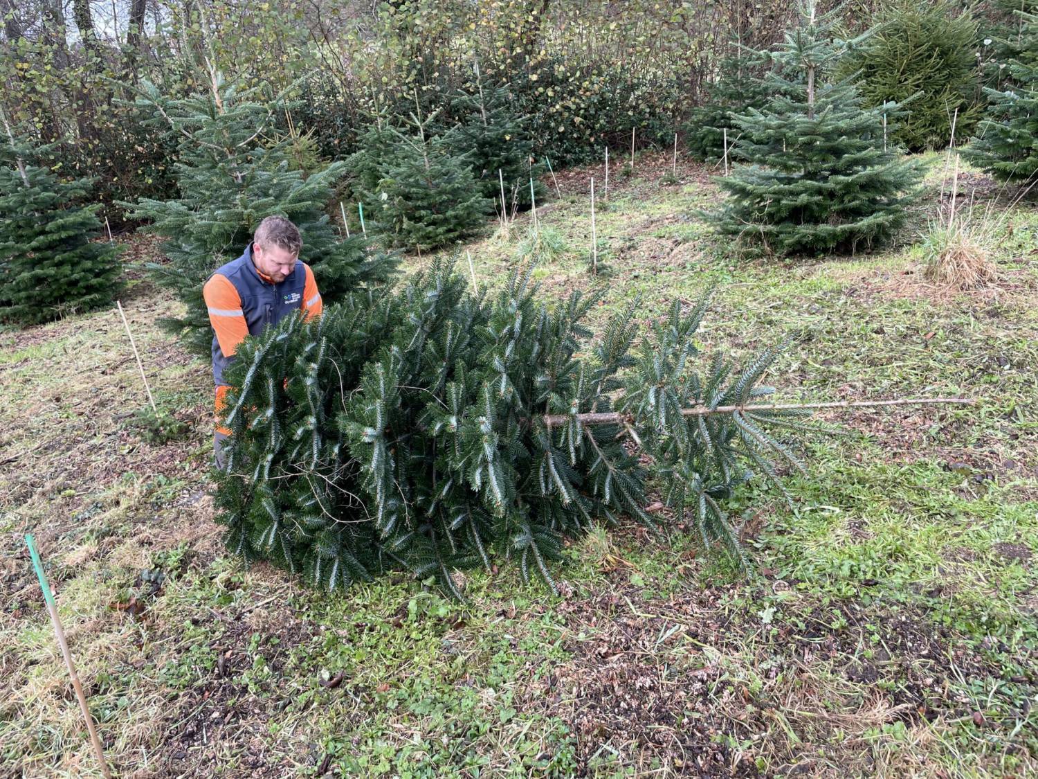 Students from the Life and Work Skills department, with help from staff and students from the Forestry department, picked a tree that had grown on the college estate. Choosing the best tree was difficult, but after some discussion, a tree was chosen that will now stand proud in college for the next few weeks.