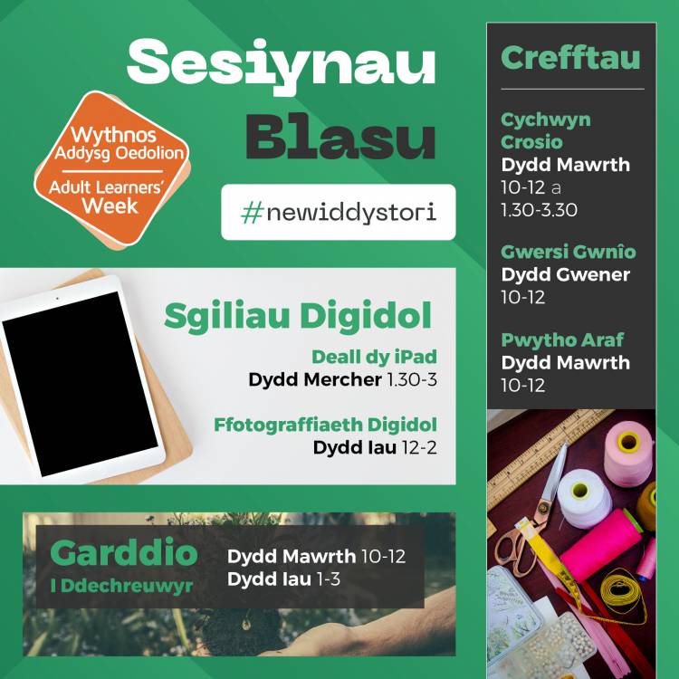 Adult Learning Week runs between September 20th and 26th, where Lifelong Learning is celebrated across Wales.