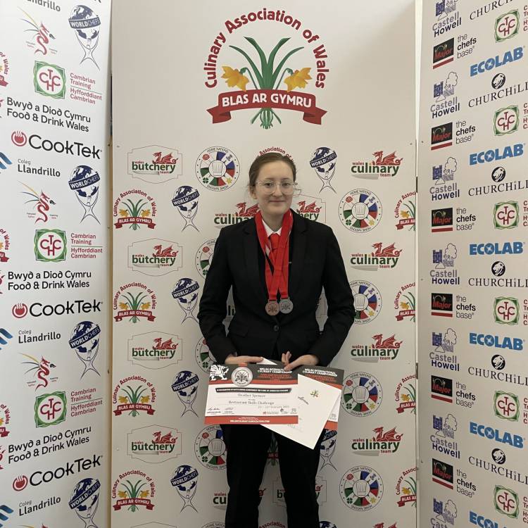 An impressive 13 silver medals were also awarded to Coleg Llandrillo learners for competitions including Restaurant Skills, Cooking a Dessert Flambe, Modern Dessert, and Creating, Preparing and Cooking Chicken for Saute.