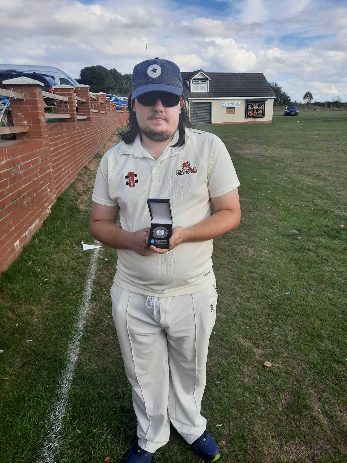 18-year-old Matthew Kennedy from Old Colwyn – along with his teammates – were presented with their caps by representatives from Cricket Wales after coming runners-up in a county championship competition.