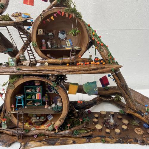 Concept / Material: It is a 3D miniature sculpture of a magic world made of wood, clay, and card.