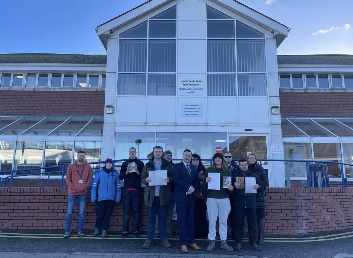 A group of Coleg Llandrillo students with additional learning needs were presented with their Duke of Edinburgh’s Bronze and Silver awards by the college’s principal, after completing several challenging tasks over a period of months.